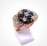 • 18K 750 rose / witgouden saffier en diamanten ring, fijnheid getest en gegarandeerd.