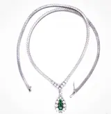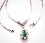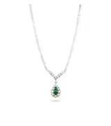 • 18K 750 witgouden halsketting met smaragd en diamanten / klassieke collier, getest en gegarandeerd op fijnheid