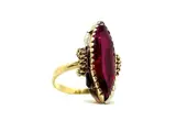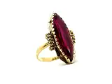 Bezel bezet met een grote marquise geslepen synthetische robijn van het Verneuil-type van ongeveer 7,25 karaat