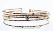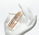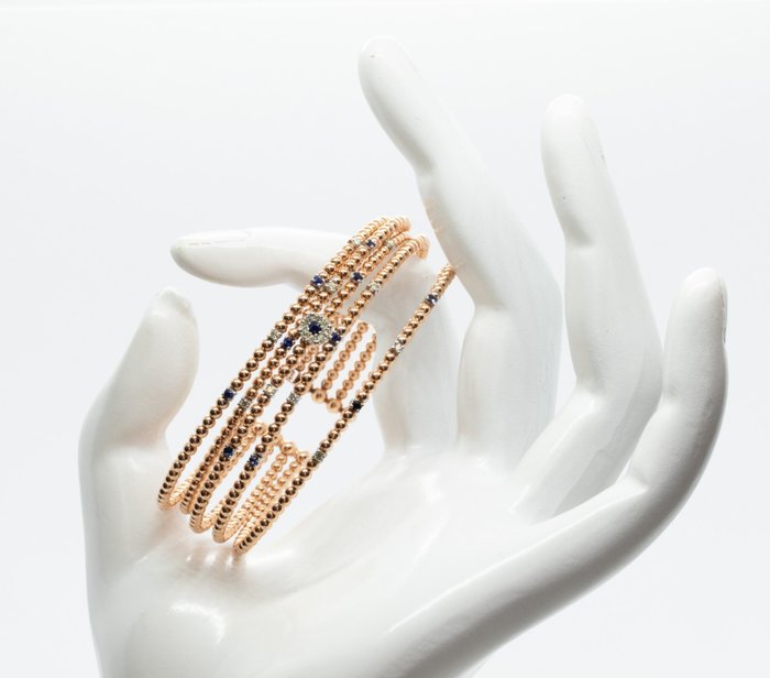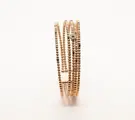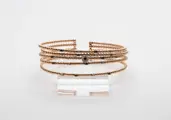 Mooie rechte bangle armband, 5 strengen in 18 kt rosé- en witgoud met stalen of titanium kern.