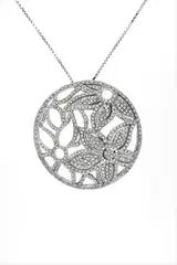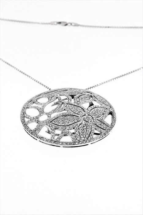 Prestigieus collier met bloemenhanger, in 18Kt 750/1000 witgoud, gemaakt in Italië, verfraaid met 4,5 karaat natuurlijke diamanten.