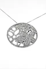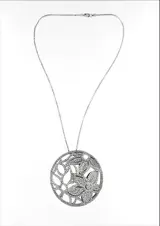 Het pavé van de hanger bestaat uit meer dan 450 diamanten met een gemiddelde grootte van 0,01 karaat per stuk: