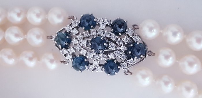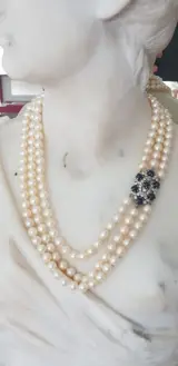 Fantastisch collier van natuurlijke zeeparels van 8,25 mm +/- drie rijen met 168 parels, sluiting met onzichtbare sluiting van