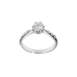 Solitaire ring in 18 kt 750/1000 witgoud met 1 briljant geslepen diamant van 0,50 ct - IJ kleurzuiverheid SI2/P1 en 6 diamanten van elk 0,02 ct. totaal 0,12 ct - kleur HI, zuiverheid VS.