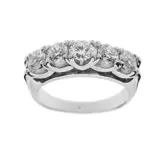 Riviera-ring van 18 kt 750/1000 witgoud met 5 briljant geslepen diamanten: 1 van 0,33 ct, 2 van 0,31 ct en 2 van 0,30 ct, totaal 1,55 ct - kleur G zuiverheid VS1 met AIG Milan gemologisch certificaat.
