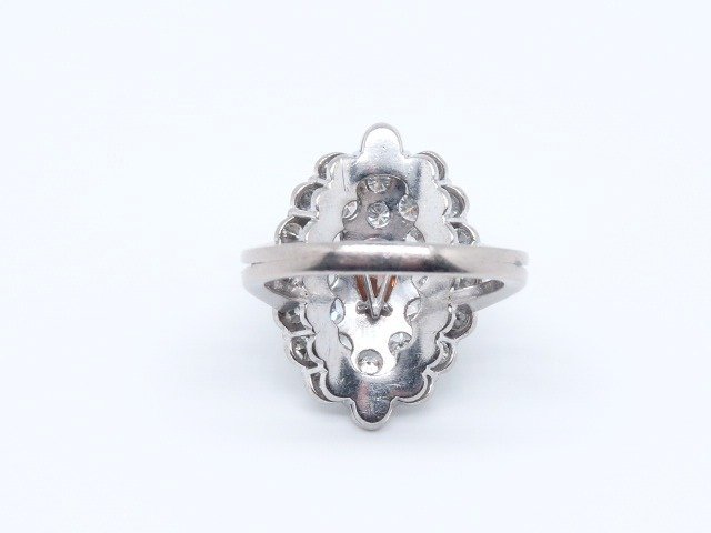Markiezin-ring gecentreerd met een Pear Diamond omgeven door 29 ronde briljante diamanten ~ 0,07 karaat elk (~ 2,7 mm), voor een totaal gewicht van ~ 2,03 karaat -