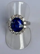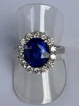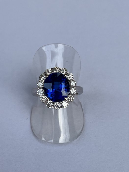 6.29ct Ceylon saffier ring met briljant geslepen diamanten 1.30ct