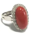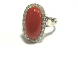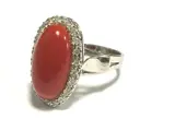 18 kt witgouden ring met Moro bloedkoraal uit de Stille Oceaan, cabochon vorm van 17 x 9 mm met