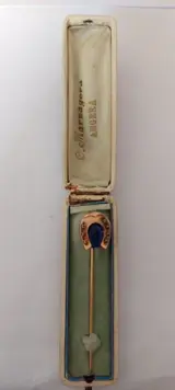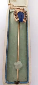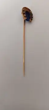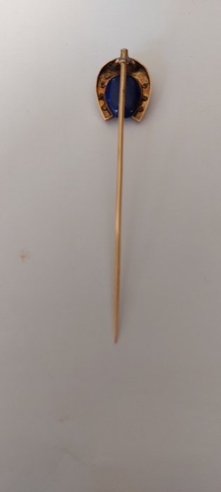 Vintage broche in 18k goud. (Getest, zie foto) met een Lapis steen en kleine contourdiamanten.