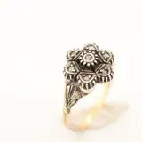 19.2K gouden en 833/000 zilveren ring met diamanten.