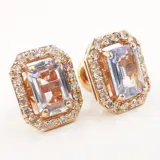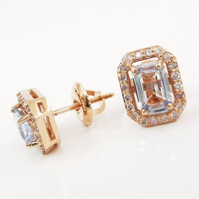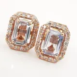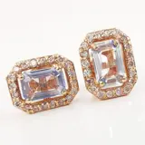 14k roségoud 2.00 ct blauwe saffier & 0.40 ct lichtroze diamanten designer halo oorknopjes