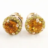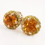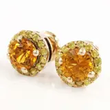 14k roségoud 2,16 ct oranje saffier en 0,30 ct fancy levendige gele diamanten designer halo oorknopjes