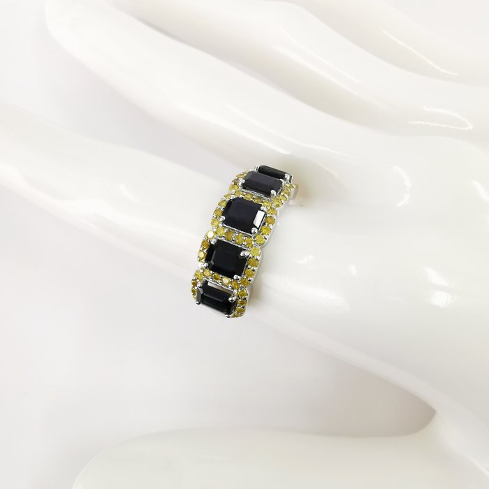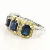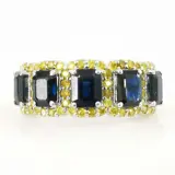 14k witgouden 2,60 ct blauwe saffier en 0,65 ct fancy levendige gele diamanten designer ring met 5 stenen