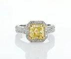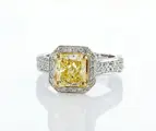 Type: 3,66 Ct. Natuurlijke fancy gele GIA-gecertificeerde rechthoekige stralende geslepen 14K witgouden diamanten ring