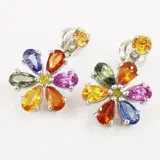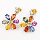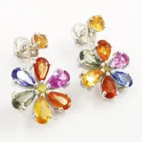14k witgouden 4,16 ct gemengde kleur saffieren & 0,10 ct fancy intens gele diamanten designer oorbellen