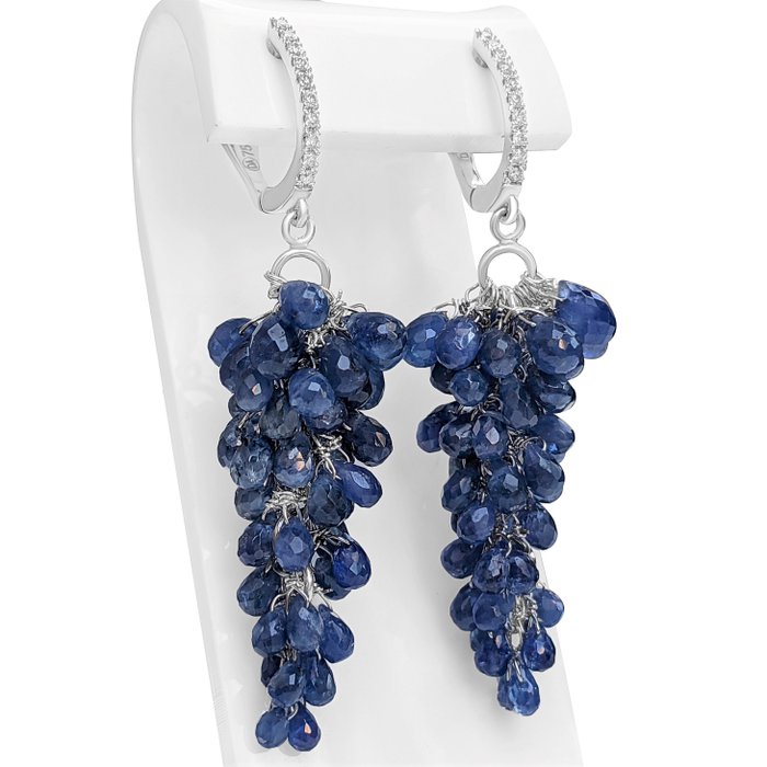 Prachtig paar perfect op elkaar afgestemde blauwe saffier en diamanten oorbellen van uitstekende kwaliteit, perfecte kleur en helderheid van de saffieren.
