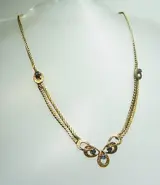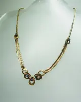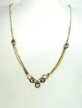 De elegante art deco ketting is gemaakt van 835 zilver en dienovereenkomstig gekeurd, en is verguld in 14 karaat geelgoud.