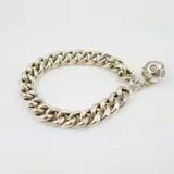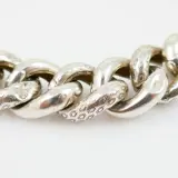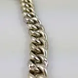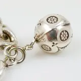 Een antieke schakelarmband met deels gegraveerde schakels. De schakels zijn hol en daardoor rinkelt hij bij beweging. De sluiting wordt gemaakt door een holle bal met een veersluiting. Deze verbindt de beide uiteinden van de armband.