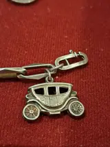 Zilveren 835/1000 bedelarmband met verschillende bedels zoals hoop,geluk en liefde. Hartje. Telefoon met hand. Een koets .