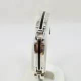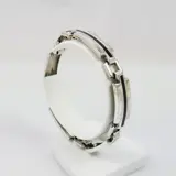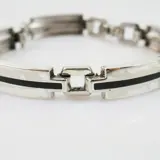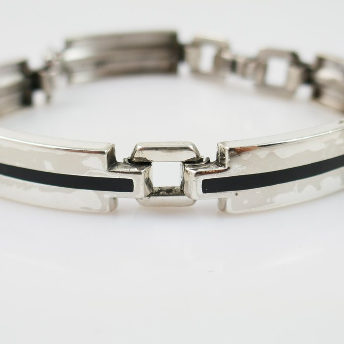 Een vintage jaren '70 armband met met op elke schakel een lijn zwart email. De armband is verhandeld bij juwelier Cortenbach te Waalwijk (1972-)