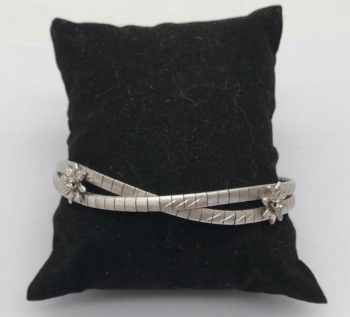 Versierd met 3 bloemen met in het midden een steen die diamanten imiteert