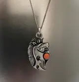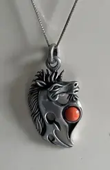 Zilveren hanger met een paard. Verrijkt met zalmrood koraal.