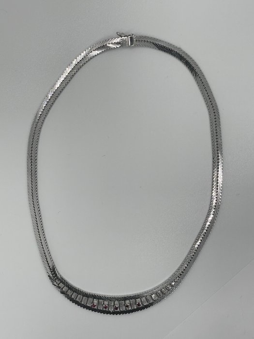Zilveren collier 835/- met 5 robijnen
