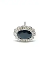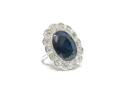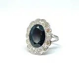 Stenen: Ovale saffier van circa 6/7 karaat - 14 half geslepen diamanten van circa 0,10 karaat, kleur G-H-VS - Totaal 1,40 karaat
