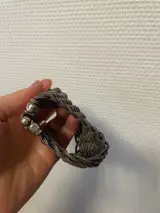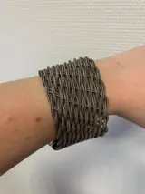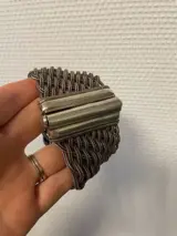 Vintage zilveren manchetarmband, gevlochten schakels. Netto gewicht: 155,4 gram. 925 zilver.