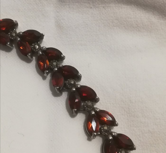 925 zilveren armband met Spessartiet granaten. Nieuw. Geen tekenen van slijtage. De doos is inbegrepen.