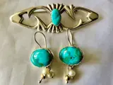 Vintage sterling zilveren gemonteerde turquoise stenen broche samen met gemonteerde turquoise oorbellen