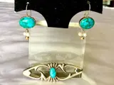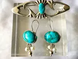 2. Oorbellen met turquoise cabochon en druppel kleine zaadgekweekte parels gewicht 5,95 gram gemerkt 925