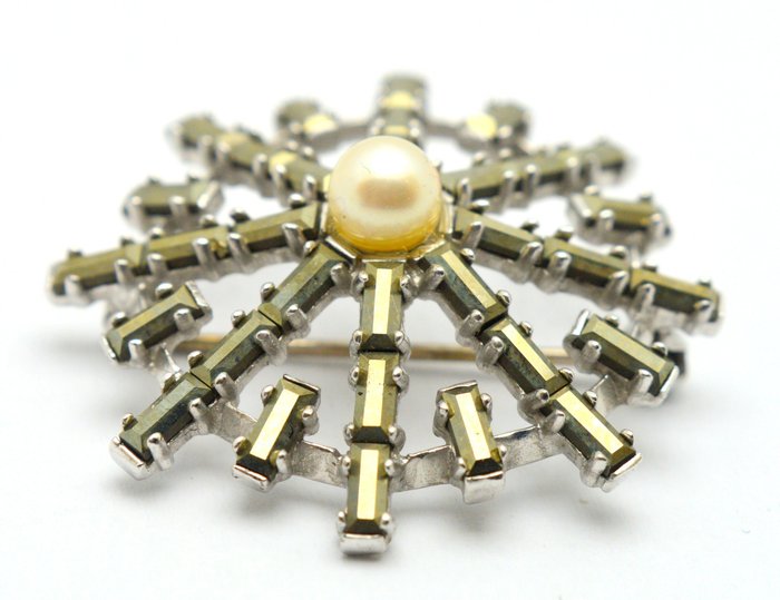 925 Zilver - Broche Zoetwaterparel - Hematiet