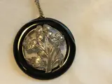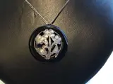 Hanger van zilveren bloemen in Onyx gezet met een zilveren ketting.