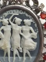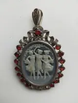 De Camee is uit Agaat gesneden en stellen de Drie Gratieen voor en gaat terug tot de Mythologie.