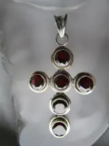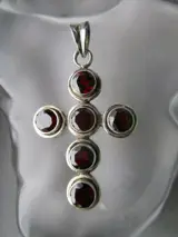 Vintage kruis hanger met granaten in antieke stijl