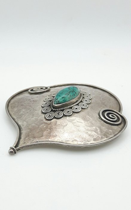 Prachtig grote zilveren hanger met een turquoise in het midden