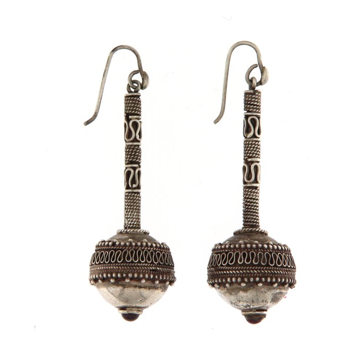 Bijzondere vintage damesoorbellen van 925% sterling zilver verfraaid met twee granaatstenen