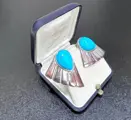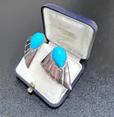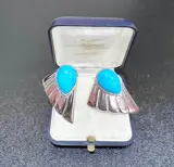 Oude set oorbellen in massief 925 zilver, met druppels, cabochon in natuurlijk turkoois (onbehandeld), met clipsluiting.