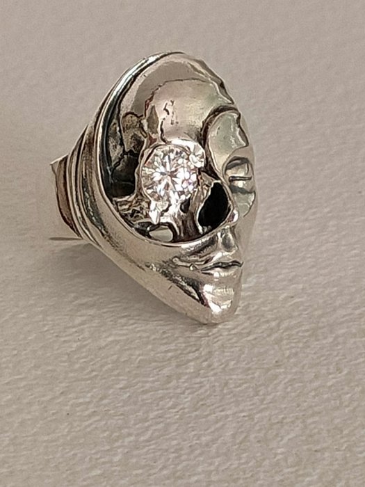 Vintage "Vita Morte" ring, in 925 zilver bezet met een briljante 1 ct mosseiniet. Totaal gewicht Mossinite 1 ct. Behandeling: Natuurlijk (onbehandeld). Zuiverheid: vvs1. Thallus: rond. Kleur: f. Schattig cijfer: uitstekend.