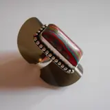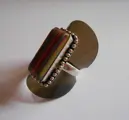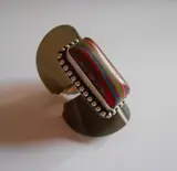 Een zilveren ring met venetiaans glas in verschillende kleuren.