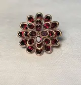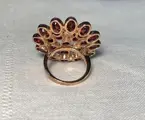 Belangrijke cocktailring in roséverguld 925 zilver met 24 granaten die lijken op een dahliabloem.