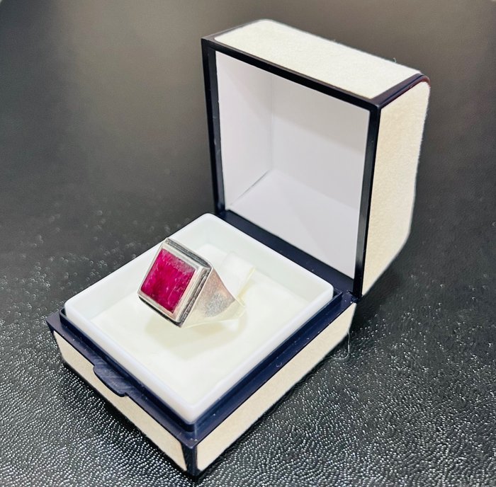 Prachtige vintage ring uit de jaren 50 in massief 925 zilver, met natuurlijke (onbehandelde) robijn.