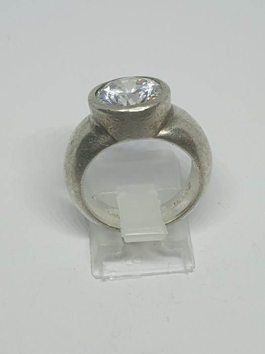 Deze ring is gemaakt van 925 oud zilver met witte saffier
