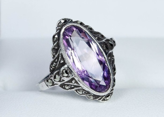 Conditie: zeer goede staat, gebruikssporen aan steenranden, licht gepolijst. Alle Marcasieten zijn er.