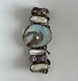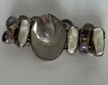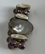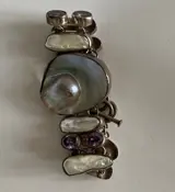 Zoetwaterparels, een Mabe-parelschelpcentrum en amethist sieren deze gekeurde 925 zilveren armband die waarschijnlijk begin jaren 90 is gekocht.
