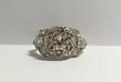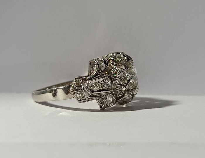 Art deco ring gemaakt van platina (bevat geen keurmerk omdat het een met de hand gemaakt stuk is zonder contrasten of keurmerken) maar de zuiverheid van het metaal is geverifieerd door maximaal 3 verschillende specialisten, waardoor ze allemaal als resultaat (platina 950 duizendste).