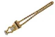 Embodying pride and the avant-garde spirit of its time, this iconic Boucheron "Fan" model watch from the 1950s is a masterpiece of innovation and extravagance. Encased in 18K yellow gold with details in platinum, and graced with 41 brilliant-cut diamonds totalling approximately 1.86ct, its design is both a nod to the daring modernity of the era and a celebration of Boucheron's legacy in creating jewellery that pushes boundaries. As part of a distinguished "family" of fan watches, it stands not just as a timepiece but as a symbol of fashion-forward thinking, likely to be highlighted in prestigious retrospectives on retro jewellery. Its presence on the wrist is a statement of elegance, a connection to a bold era where Boucheron led with designs that were both extravagant and challengingly modern.