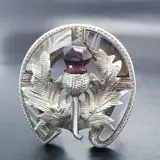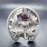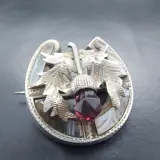 Mooie Antieke Sterling Zilveren Amethist & Gestreepte Agaat Schotse Distel Hoefijzer Pin Broche.
