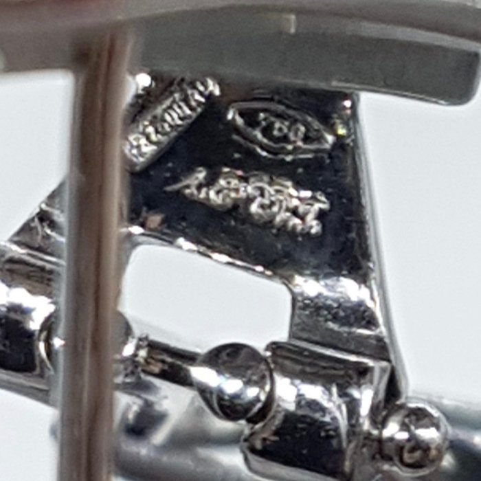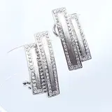 Paar Alfieri & St. John oorbellen in 18 kt witgoud met twee rechthoekige elementen omgeven door diamanten.
